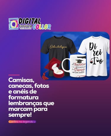 Na Digital Collor, personalizar vai além de estampar: é transformar memórias em presentes únicos. Canecas, copos e camisas para todas as ocasiões, Revelação de fotos em diversos tamanhos, Brindes para eventos, empresas e datas especiais Com mais de 40 anos no mercado, garantimos qualidade, variedade e muito carinho em cada detalhe.