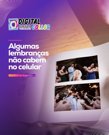 A gente tira fotos o tempo todo, mas quase nunca imprime. Elas ficam esquecidas no rolo da câmera... Mas uma foto revelada pode mudar tudo: Vira um quadro, Vira um presente, Vira uma memória que você toca, vê e sente Não deixe momentos especiais sumirem na nuvem. Traga pra Digital Collor e transforme suas fotos em emoção real.