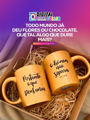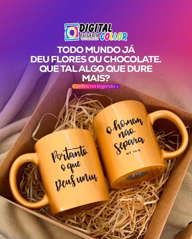 Você quer emocionar, mas não sabe como? Flores murcham. Chocolate acaba. Mas um presente personalizado fica pra sempre. ✔ Caneca com foto de vocês ✔ Camisa com frase especial ✔ Porta-retrato com memória inesquecível Na Digital Collor, seu presente é criativo, único e cheio de valor.